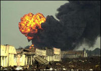 Поток лавы шириной в 50 метров медленно движется по городу, рассекает его пополам и изливается на другом конце в озеро Киву В самом городе Гома, расположенном недалеко от вулкана, сохраняется состояние повышенной опасности. Как сообщает агентство Associated Press, сегодня утром, 21 января, лава послужила причиной взрыва автозаправочной станции, в результате чего погибло около 50-ти человек, пытавшихся откачать топливо из резервуара. Кроме этого, уничтожены все электростанции, 2 из трех водонапорных станций, аэродром, озерный порт, сообщает РИА "Новости". Число человеческих жертв в городе и окружавших его поселках уже измеряется сотнями. На данный момент поток лавы шириной в 50 метров медленно движется по городу и рассекая его пополам, и изливается на другом конце в озеро Киву. Однако специалисты говорят, что движение потока значительно замедлелось. По обеим сторонам конголезско-руандийской границы зафиксированы мощные подземные толчки. Эксперты продолжают настаивать на том, что эти толчки вполне могут быть предвестниками нового извержения вулкана. Не все эксперты, однако, считают, что городу Гома угрожает дальнейшая опасность. Несмотря на то, что некоторые жители Гомы уже возвращаются домой, в импровизированных временных лагерях в Руанде остаются сотни тысяч человек. Эксперты все чаще говорят, что им вполне могут угрожать эпидемии инфекционных заболеваний, в том числе и холеры. После извержения вулкана Нираонго в 1977 году в регионе наблюдалась вспышка этого опасного заболевания. Представители ООН особенно обеспокоены тем, что многие беженцы пьют отравленную воду из озера Киву, так как у беженцев не хватает питьевой воды. Раскаленная лава, которая течет по городу Гома и затем попадает в озеро, загрязняет и без того непригодную для питья озерную воду. Установки по очистке воды в Гоме вышли из строя, сообщает Би-Би-Си. Большинство запасов продовольствия в городе Гома были уничтожены во время извержения. Сообщается, что примерно 300 тысяч беженцев, находящиеся на руандийской стороне границы, уже получили от ООН и Всемирной продовольственной программы печенье и воду. Корреспондент.net Другие Новости в этой рубрике Индонезийская деревня погребена под оползнем В США продолжают гореть леса Снежные бури парализовали Европу Частный самолет потерпел аварию в США Иракцев, сотрудничающих с США, продолжают убивать Ливан: убит палач Сабры и Шатиллы Автокатастрофа на Таиланде – грузовик столкнулся со школьным автобусом, погибли США выпустило новые плакаты с фотографиями Караджича и Младича Из-под венца - сразу на развод Работа австралийской проститутки опасна Угонщики утопили автомобиль Николаса Кейджа в озере Секта Аум Синрике восстановила свою сеть в России Математики вывели формулу борьбы с преступностью Центральная Америка готовится выступить против организованной преступности Индия: убиты 4 полицейских, охранявших Американский Центр Нарушители правил дорожного движения могут купить свое фото у полицейских Бухгалтерша ограбила Донну Каран на миллион долларов Зрителей обокрали, но уровень преступности снижается... Китай: людей убивают фейерверки и жадность "Башмачному" террористу Ричарду Риду грозит пять пожизненных сроков заключения |