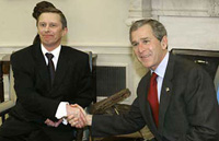 Буш сказал, что готов обсудить с президентом России конкретные формы такого договора, в том числе и вопросы утилизации ядерных боеголовок, требующей "очень большой и очень тщательной работы". С его точки зрения "самым главным в этом вопросе является проверка", открытость которой необходима для достижения нужного "уровня доверия". Прошедшие переговоры с министром обороны России Сергеем Ивановым Джордж Буш охарактеризовал как "очень хорошие". Глава Белого дома "разделяет оптимизм" Иванова по поводу грядущего саммита, считая, что "хорошие, тесные взаимоотношения" России и США омрачает лишь ряд спорных вопросов. Например - проблема экспорта куриного мяса. Американский президент также добавил: "Я уверен, что у нас будут отличные взаимоотношения с Россией и мы будем тесно сотрудничать, чтобы этого добиться". Lenta.Ru Другие Новости в этой рубрике К.Райс: Поведение России не соответствует званию члена G-8 Американские чиновники отменили визит в Израиль Джордж Буш в ближайшие два дня посетит Пентагон США не поддерживают позицию России в газовом вопросе Китай протестует в связи с введением США санкций против их компаний Совет безопасности ООН проголосовал за независимую Палестину Дик Чейни: решения по Ираку пока нет, но будет Газета преувеличивает Правительство Израиля сняло домашний арест с Ясира Арафата. США предъявили доказательства вины Хусейна Под эгидой ООН избран первый президент Косово Израиль не собирается проводить мирные переговоры с Палестиной Американская ПРО не отличает ракету от фальшивки Россия включена в доклад о странах ''оси зла'' В Гааге против Милошевича выступит британский лорд Демократы требуют, чтобы Буш объяснил, c кем и где воюет Буш поддержал инициативу Пентагона высадить американских военных в Грузии Фидель Кастро обвинил США в применении биологического оружия Милошевич потребовал немедленного освобождения Глава афганского правительства поблагодарил ''ось зла'' за помощь |