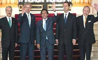 Джордж Буш заявил о своей поддержке перуанскому правительству в деле борьбы с наркоторговлей и терроризмом. Выступая на совместной пресс-конференции с президентом Перу Алехандро Толедо в Лиме, американский лидер сказал, что в вопросах войны с терроризмом интересы двух стран совпадают.В субботу Буш впервые после вступления в должность прибыл в Перу. По окончании встречи с Толедо Буш беседовал с президентами Боливии и Колумбии, а также вице-президентом Эквадора. Лидеры обсуждали возможность экспорта в США латиноамериканских товаров при условии, что правительства указанных стран активизируют действия против наркокартелей. В ходе визита в Лиму Буш также объявил о возвращении в Перу после 27-летнего волонтеров Корпуса мира, американской общественной организации, созданной 1 марта 1961 года по указу Джона Кеннеди. Президент США пообещал руководству Перу оказать активную помощь в уничтожении нелегальных предприятий по производству героина и кокаина, расположенных в удаленных горных районах. Однако стороны не достигли соглашения о возобновлении воздушной разведки, которая была прекращена после того, как перуанский истребитель сбил самолет с миссионерами из США, сообщает BBC. Lenta.Ru Другие Новости в этой рубрике К.Райс: Поведение России не соответствует званию члена G-8 Американские чиновники отменили визит в Израиль Джордж Буш в ближайшие два дня посетит Пентагон США не поддерживают позицию России в газовом вопросе Китай протестует в связи с введением США санкций против их компаний Ирак выполнил все требования ООН Кастро пожаловался, что Буш выгнал его с саммита в Монтеррее Сенат урезал американским политикам предвыборные фонды Ирак пожаловался в ООН на США. Аннан обещал разобраться Вице-президент США завершает азиатский тур визитом в Анкару Индия и Пакистан увлеклись шпионскими скандалами США попросили арабов прекратить антисемитскую пропаганду Судебный процесс по делу Милошевича приостановлен Маргарет Тэтчер: Великобритания должна выйти из Евросоюза Коштуница и Джинджич ничего не знали об аресте американского дипломата Сербия и Черногория образуют новое союзное государство Буш готов сократить ядерные вооружения Совет безопасности ООН проголосовал за независимую Палестину Дик Чейни: решения по Ираку пока нет, но будет Газета преувеличивает |