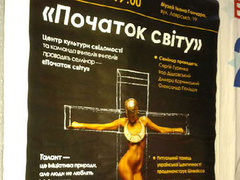 | Киевлян возмутили "языческие" афиши с голой женщиной на кресте |