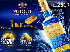 Окружной административный суд Крыма запретил рекламную кампанию водки Medoff, в рамках которой покупатели могли выиграть золотые слитки. С иском в суд обратилось госпотребинспекция Крыма. Чиновники утверждали, что данная реклама "стимулировала граждан к приобретению алкоголя, нанося вред обществу". | В Донецке избили героя фильма о детях-шахтерах