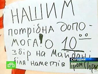 Плакат в палаточном городке у Верховной Рады. Кадр телеканала НТВ
