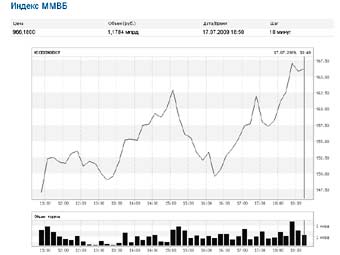 17 июля лидером роста среди ведущих компаний на ММВБ второй день подряд стал "Норильский никель", чьи акции выросли в цене на 6,7 процента. Банк ВТБ прибавил почти 5 процентов, а "Газпром" - 4,6 процента. "Мосэнерго" прибавило 9,69 процента благодаря двукратному росту прибыли в первом квартале 2009 года. Все отраслевые индексы РТС закрылись в плюсе, причем лучший результат показали "Металлы и добыча" - 3,61 процента.