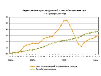 Такая ситуация объясняется резким падением цен производителей в конце прошлого года, после чего они вновь начали расти быстрее потребительских.