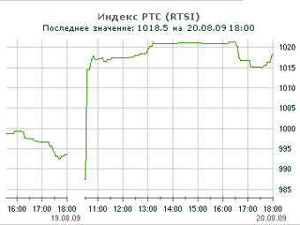 Российские фондовые индексы 20 августа смогли вырасти на фоне резкого увеличения цен на нефть на мировом рынке, зафиксированном 19 августа. По итогам сессии индекс РТС поднялся более чем на два с половиной процента до 1018,5 пункта. ММВБ к 18:15 по московскому времени вырос на 1,67 процента до 1051,32 пункта.