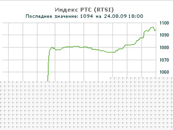 Российские фондовые индексы начали неделю ростом. По итогам торговой сессии 24 августа основной показатель РТС поднялся на 4,15 процента до 1094 пунктов, а ММВБ - на 1,31 процента до 1120,54 пункта.