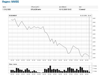 Российские фондовые индексы по итогам торгов 16 октября упали почти на два процента. К концу торговой сессии основной показатель РТС снизился на 1,79 процента до 1408,68 пункта, а ММВБ - на 1,83 процента до 1317,07 пункта. Два дня назад, 14 октября, в ходе сессии оба показателя обновили годовые максимумы: РТС поднялся на 3,22 процента до 1445 пунктов, а ММВБ - на 3,56 процента до 1368 пунктов.