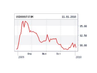 Курс доллара за первые минуты валютных торгов на ММВБ 11 января упал почти на 80 копеек по сравнению с уровнем закрытия 30 декабря 2009 года. Американская валюта к 10:16 по московскому времени подешевела до 29,4526 рубля.