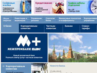 Скриншот сайта Межпромбанка