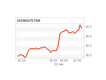 Средневзвешенный курс доллара 12 августа в ходе торгов на ММВБ поднялся на 21 копейку до 30,4487 рубля. Таким образом доллар достиг максимального показателя августа текущего года. Последний раз курса доллара поднимался выше отметки 30,4 рубля 23 июля.