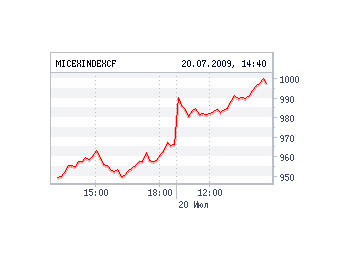 Российские фондовые индексы к середине торговой сессии 20 июля поднялись на три-четыре процента, а индекс ММВБ смог преодолеть отметку в 1000 пунктов. После этого на бирже была зафиксирована небольшая коррекция. В результате к 14:45 по московскому времени ММВБ вырос по сравнению с закрытием в пятницу на 3,29 процента до 998 пунктов. РТС за тот же период поднялся на 4,69 процента до 968 пунктов.