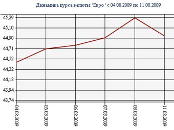 В конце прошлой недели рубль резко ослабел как по отношению к евро, так и к доллару. 7 августа ЦБ поднял курс европейской валюты сразу более чем на 37 копеек (до 45,2893 рубля), а американской - на 36,5 копеек (до 31,5473 рубля).