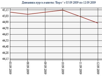 На валютных торгах ММВБ европейская валюта уже второй день торгуется ниже 45 рублей. К 13:20 по московскому времени 11 сентября средневзвешенный курс евро упал на 8 копеек до 44,8734 рубля. Доллар на ММВБ подешевел почти на 15 копеек до 30,7271 рубля.