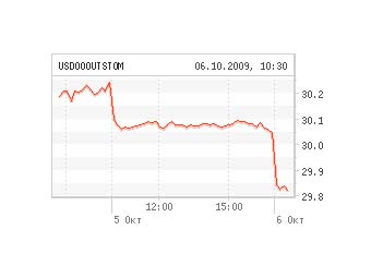 Средневзвешенный курс доллара США расчетами "завтра" снизился в первые минуты торгов на ММВБ на 22,85 копейки до 29,8476 рубля. Таким образом, американская валюта вновь стала стоить меньше 30 рублей. Впервые это произошло в ходе торгов 23 сентября.