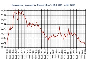 Банк России установил курс доллара на 9 октября на уровне 29,6396 рубля, опустив его сразу на 14 копеек. Официальный курс американской валюты не опускался так низко с начала января. 12 января доллар стоил 30,5331 рубля, а 1 января - 29,3916 рубля. На 1 января курс американской валюты был установлен ЦБ еще в 2008 году.