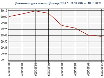 Банк России установил курс доллара на выходные на уровне в 29,6090 рубля, снизив его на три копейки по сравнению с предыдущим днем. В течение текущего месяца официальный курс американской валюты по отношению к рублю снижается: с 1 октября, когда доллар стоил 30,0087 рубля, он подешевел в общей сложности почти на 40 копеек.
