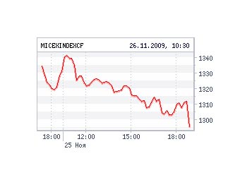 Российские фондовые индексы на открытии торгов 26 ноября упали. За первые минуты торговой сессии основной показатель ММВБ опустился на 1,4 процента до 1293,76 пункта, снизившись ниже отметки в 1300 пунктов. Индекс РТС сократился на 1,22 процента до 1410,12 пункта.