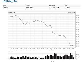 Доллар держался выше 30-рублевого уровня в течение трех дней, превысив эту отметку 8 декабря. Причиной резкого роста курса иностранных валют к рублю было общее беспокойство инвесторов по поводу ситуации на развивающихся рынках на фоне возможного дефолта крупнейшего инвестфонда эмирата Дубай.