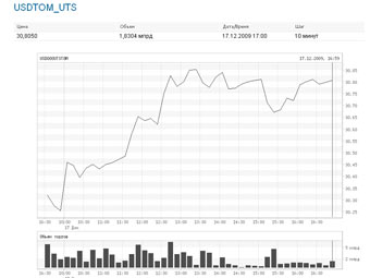 Доллар, дешевевший в течение всего 2009 года, начал быстро расти с конца ноября. 8 декабря американская валюта превысила 30-рублевую отметку. Причиной послужило беспокойство инвесторов по поводу возможного дефолта эмирата Дубай.