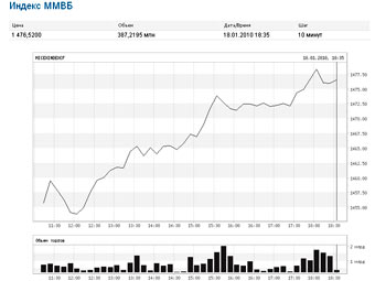 Российские фондовые индексы по итогам торгов 18 января обновили максимумы 2010 года. К концу сессии основной показатель ММВБ вырос на 1,85 процента до 1479,53 пункта, а РТС поднялся на 1,4 процента до 1581,09 пункта.