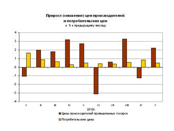 Значительный рост цен в октябре 2010 года наблюдался у компаний, которые специализируются на добыче полезных ископаемых (3,3 процента), а также у производителей кокса и нефтепродуктов (3,5 процента). В то же время почти не изменились цены у производителей машин и оборудования, а также в сфере производства и распределения электроэнергии, газа и воды.