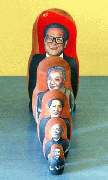 Для тех, кому не охота вдаваться в тонкости политического устройства Китая, где сейчас происходит запланированная смена правящей элиты, китайцы выпустили матрешку. Новый лидер компартии Китая пока неизвестен, но уходящий сейчас Цзян Цзэминь уже удостоился чести войти в историю в виде самой крупной матрешки в наборе.