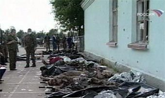 Трупы боевиков, участвовавших в захвате бесланской школы. Кадр телеканала "Россия"