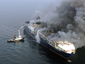Турецкое грузовое судно, на борту которого находились двести грузовиков и девять тонн нефтепродуктов (не считая топлива, которого в баках корабля может быть, по разным подсчетам, от 100 до 200 тонн), загорелось у берегов Хорватии. Корма корабля выгорела почти полностью, сообщает Reuters.