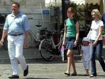 Герхард Шредер с семьей и удочеренной девочкой, кадр НТВ, архив